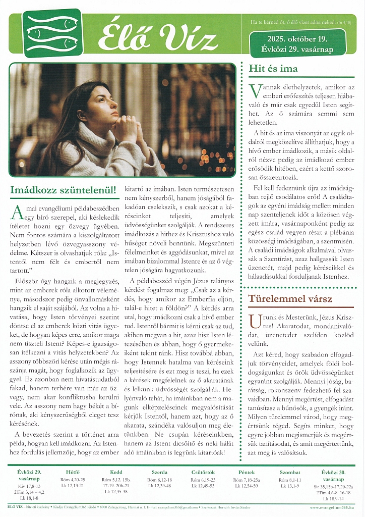 A római – magyar naptár szerinti ünnepek, emléknapok: 6:30: rózsafüzér-imádkozás 7:00: szentmise 15:00: Isteni Irgalmasság rózsafüzére 20:00: online ima (https://discord.gg/3xTXPPuB39) |